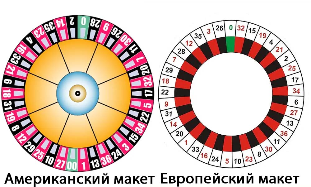 Обратите внимание, что американское колесо имеет два нуля. Это важно, так как это удваивает преимущество для казино. На европейском колесе вы бы потеряли, в долгосрочной перспективе, 2.7% от любых денег, на которые ставите. На американском колесе вы потеряете 5,26%.