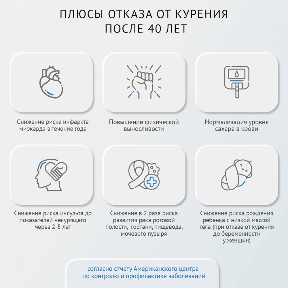 Официальный сайт Американского онкологического общества приводит следующую временную шкалу жизни после курения: