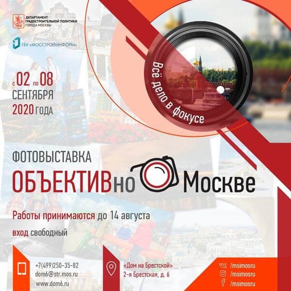 Со 2 по 8 сентября в выставочном центре «Дом на Брестской» пройдет знаковое мероприятие для фотолюбителей и искателей вдохновения – фотовыставка «ОБЪЕКТИВно о Москве». Мероприятие проводится в рамках празднования Дня города, вход бесплатный. Информационными партнерами фотовыставки стали официальный сайт «Комплекса градостроительной Политики и строительства города Москвы» и онлайн PR-агентство Pronline.