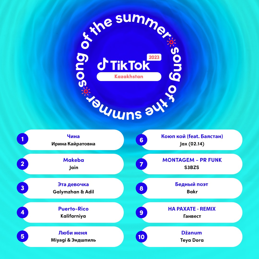 TikTok, ведущая платформа для просмотра и создания коротких видеороликов, подвела музыкальные итоги уходящего лета и анонсировала список главных треков, которые полюбились больше всего пользователям приложения в Казахстане и по всему миру в этом сезоне.