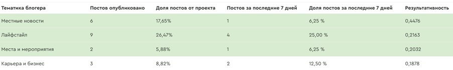 Из прописанных на старте гипотез, наилучшую конверсию показали блогеры с тематиками: местные новости, места и мероприятия (региональные паблики в наших гипотезах) и лайфстайл.