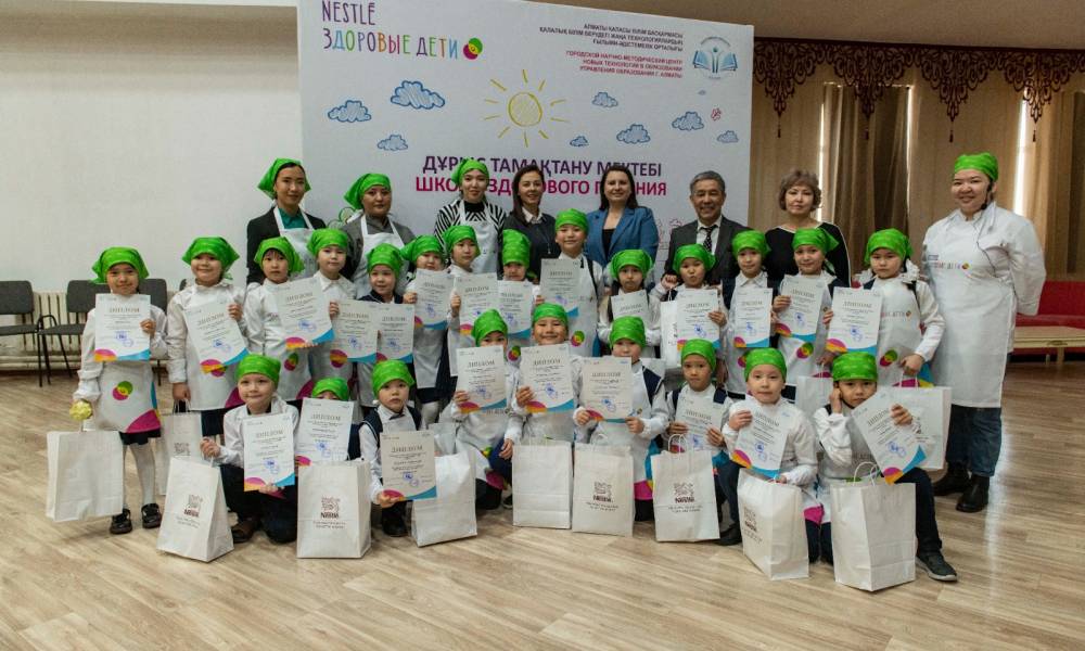 Казахстанская программа «Школа здорового питания» реализуется в рамках глобальной инициативы «Нестле. Здоровые дети». Цель инициативы – помочь 50 миллионам детей по всему миру вести более здоровый образ жизни к 2030 году. «Школа здорового питания» работает в столичных и алматинских школах с 2013 года, а с 2023 года расширяет свою географию в другие города Казахстана. Программа ориентирована на детей 6–8 лет и реализуется через систему занятий, проводимых педагогами. Она разработана совместно с Городским научно-методическим центром новых технологий в образовании Управления образования г. Алматы и Казахской академией питания. Всего за время реализации в Казахстане со «Школой здорового питания» познакомилось порядка 200 000 детей.