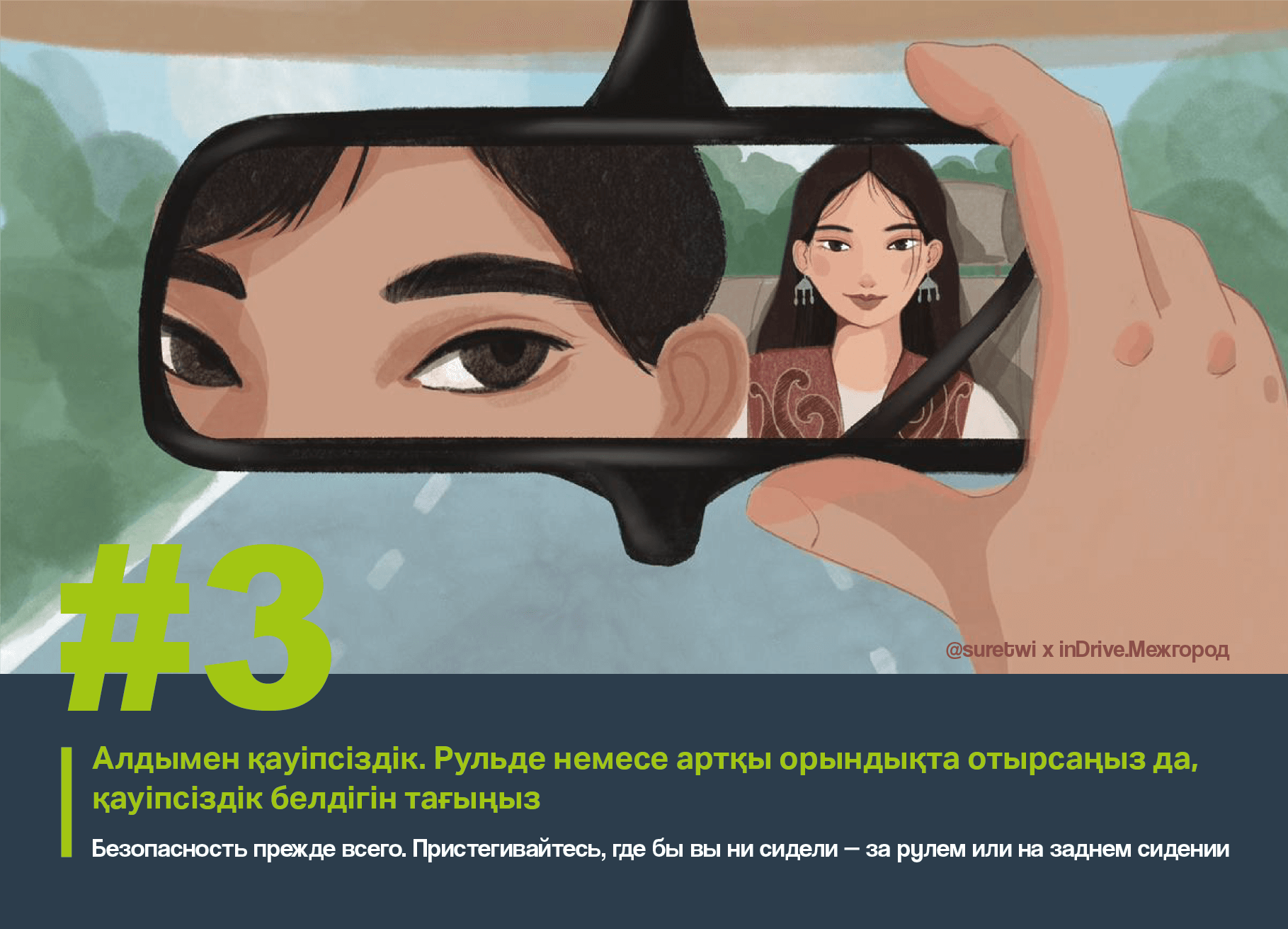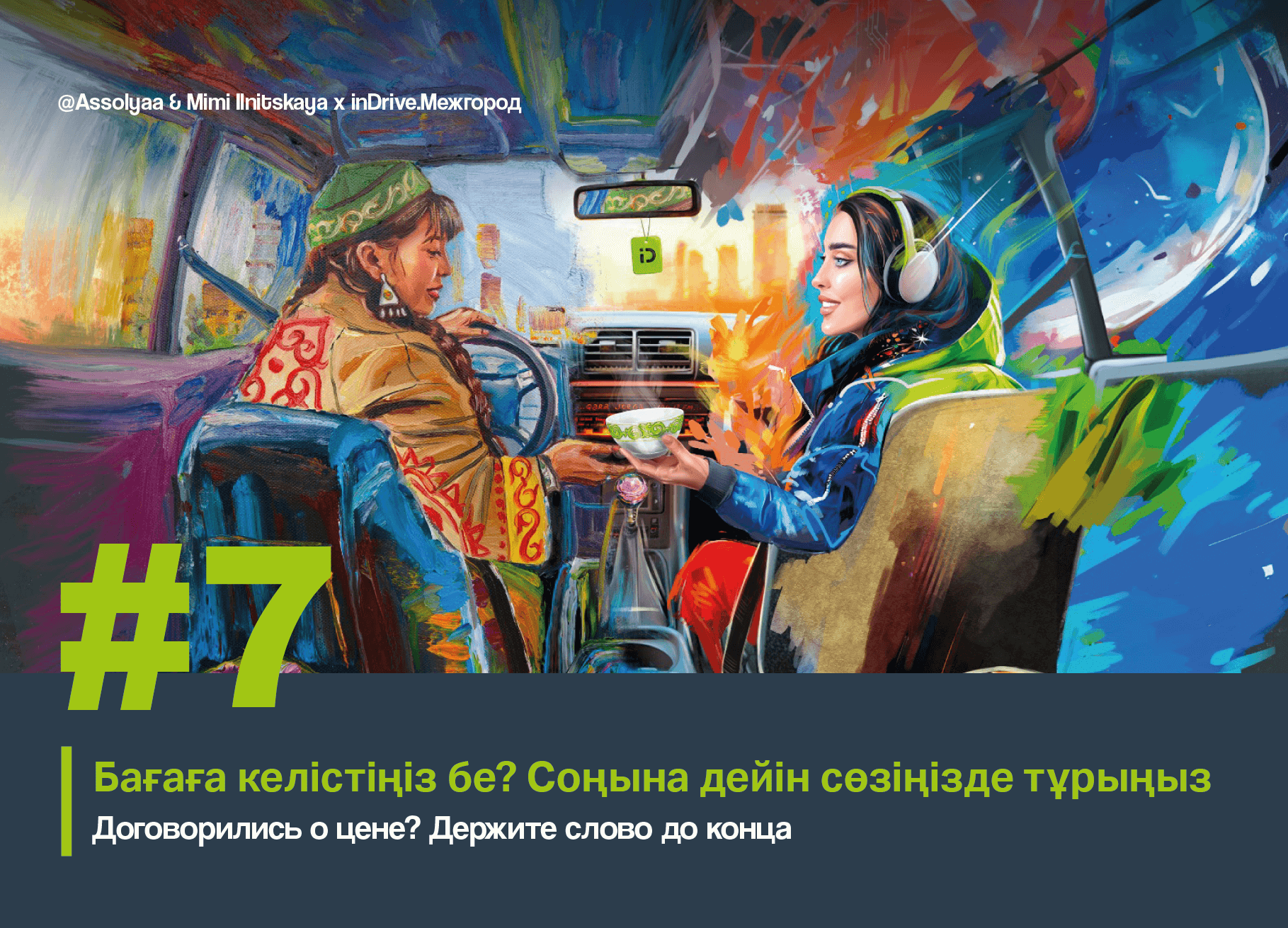 “Будем честными, мы всегда хотим быть в максимально комфортных условиях и это касается любой ситуации, особенно совместной поездки. Это социальная коммуникация о том, как круто бы обговорить условия заранее. И так цена установлена, все согласны и «Ақ жол». За длительную поездку можно поделиться своими впечатлениями о городе, целях поездки, узнать жизнь друг друга или даже найти друга! Конечно же, у inDrive предусмотрены все правила на разные ситуации, и я заранее могу поинтересоваться: готовы ли попутчики к трем часам рассказов Джона Руэла Толкина”, — говорит Мими Ильницкая, одна из участниц проекта.