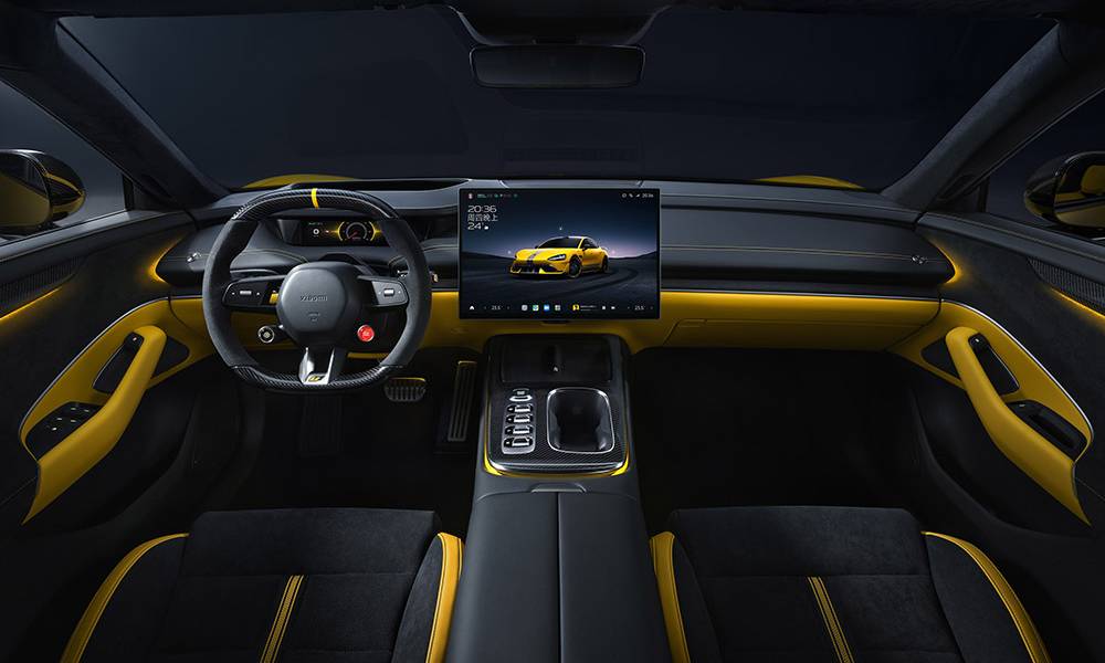 Интерьер Xiaomi SU7 Ultra - это абсолютное ощущение спорткара. Здесь установлены новые спортивные сиденья с улучшенной активной боковой поддержкой, обеспечивающие более быстрый отклик и более широкую зону поддержки для лучшей фиксации тела во время интенсивного вождения. Рулевое колесо имеет новый гоночный дизайн с плоской верхней и нижней частью. Оно изготовлено из модернизированного углеродного волокна и обтянуто материалом Alcantara®️ для надежного хвата. Желтый центральный маркер в положении «12 часов» помогает контролировать точное направление движения во время скоростных маневров. В сочетании с желтыми ремнями безопасности и красной кнопкой Boost на рулевом колесе интерьер Xiaomi SU7 Ultra наполнен гоночным духом.