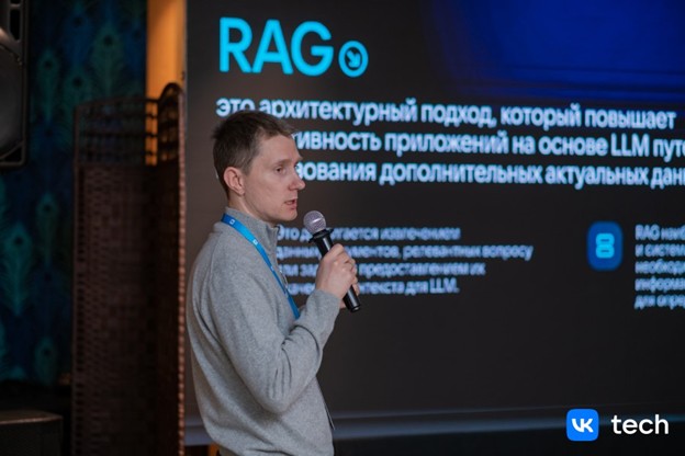 Еще одно интересное предложение — это использование больших языковых моделей (LLM), более известных как нейросети, для нужд бизнеса. Александр Волынский, технический менеджер продукта VK Cloud, рассказал об опыте внедрения виртуального помощника для казахстанской IT-компании Rocket Tech на базе искусственного интеллекта.