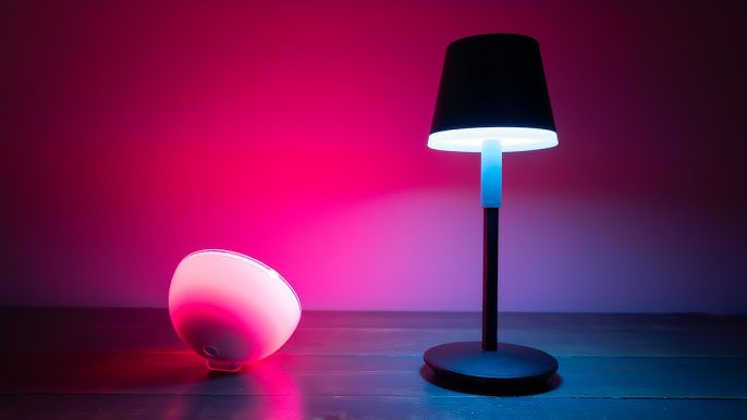 - Умная лампа Philips Hue Go. Настольный светильник с возможностью менять цвет и создавать атмосферу в доме.