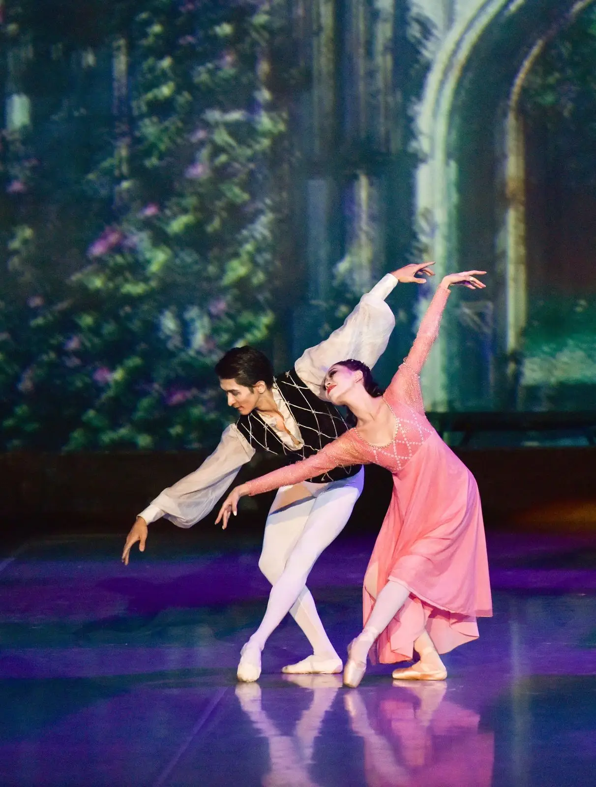 Балет «Ромео и Джульетта» на музыку П.И. Чайковского в постановке Государственного академического театра танца Республики Казахстан был создан под руководством Булата Аюханова и является значимым произведением в отечественной культуре. История любви юного Ромео и прекрасной Джульетты, которая до сих пор будоражит сердца и воображение композиторов разных стран. Она продолжает жить в музыке не только прошлой эпохи, но и в современном мире, получая новые воплощения и взгляд на пьесу. Яркие костюмы, грация и пластика балетных номеров, страсть и страдания главных героев под бессмертную музыку классиков— все это сопровождается современными решениями сценографии и визуализации видеографики, которая создает глубину картины происходящего на сцене. Основатель театра и мэтр балетного искусства Булат Аюханов так же привнес свой творческий взгляд и авторский почерк в каждом номере и хореографии балетных постановок, что сделало его имя бессмертным и даже после своего ухода его имя звучит в каждом балетном исполнении. Его решения в исполнении артистов балета до сих пор считаются новаторскими, хотя не отходят от классических балетных стандартов и классического исполнения. Видеодраматургия безусловно усиливает впечатление от увиденного на сцене.