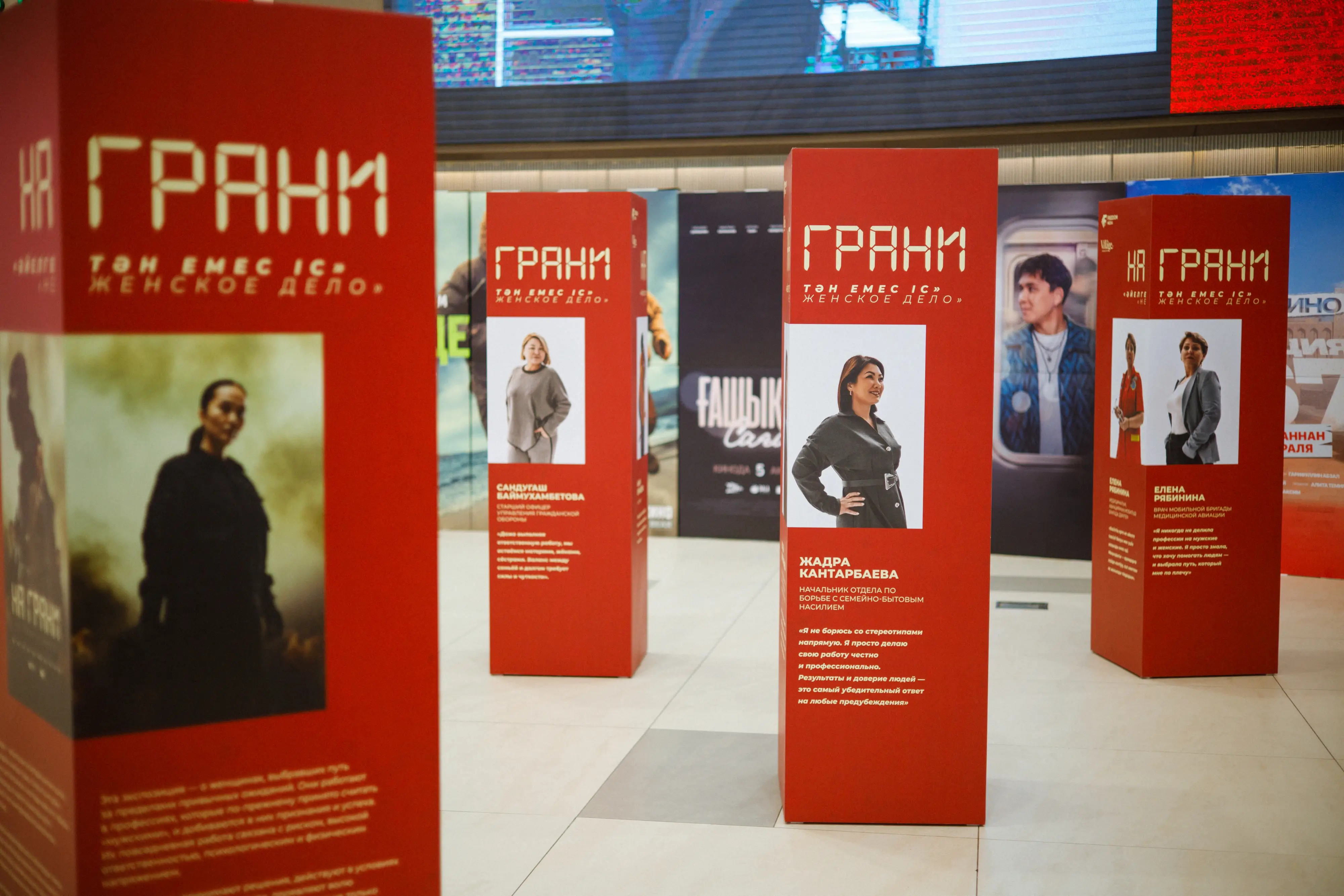 В рамках премьерного показа сериала открылась фотовыставка «На грани: Не женское дело», организованная совместно с The Village. Проект стал смысловым продолжением сериала и расширил его контекст, сместив фокус с экранных персонажей. В Алматы прошел премьерный показ драматического сериала «На грани», который поднимает вопрос о том, каково быть женщиной в профессии, традиционно считающейся мужской.
